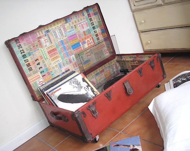 Me papece una pìeza preciosa, su dueña no sólo ha rescatado del olvido el baúl de su bisabuelo, sino que además cuenta con una pieza con carácter de lo más versátil, la veo en cualquier sitio, debajo de una escalera, en el salón, el despacho, el dormitorio,....y guardando cualquier cosa, el rincón de escuchar viejos discos, con libros, con botellas o cualquier tesoro que se nos ocurra, incluso de mesa con un cristal encima, claro que en este caso nos perderíamos el interior.